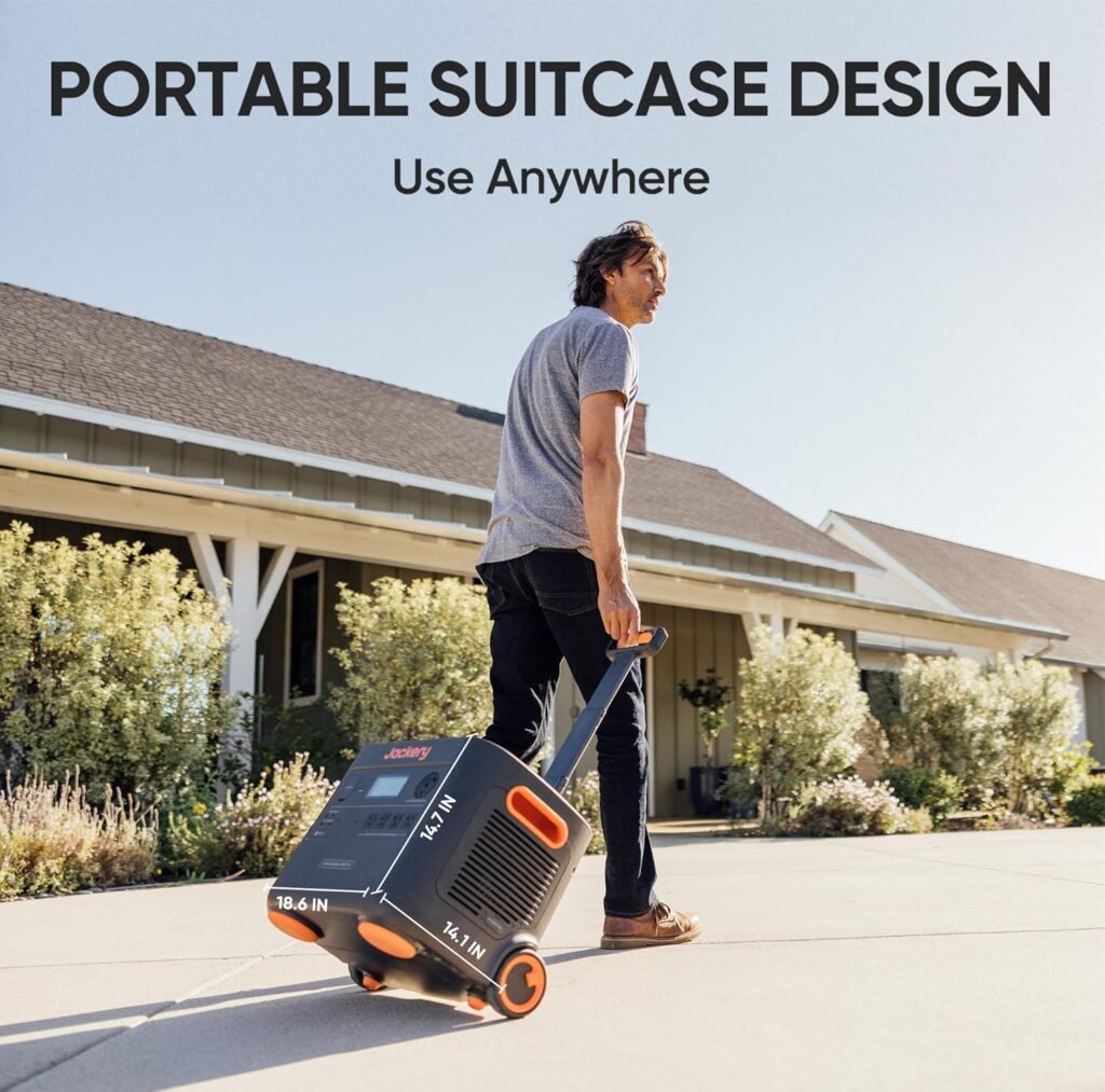 Telescoping Handle and Wheels for mobilityRequires Jackery’s proprietary solar panels for guaranteed performance